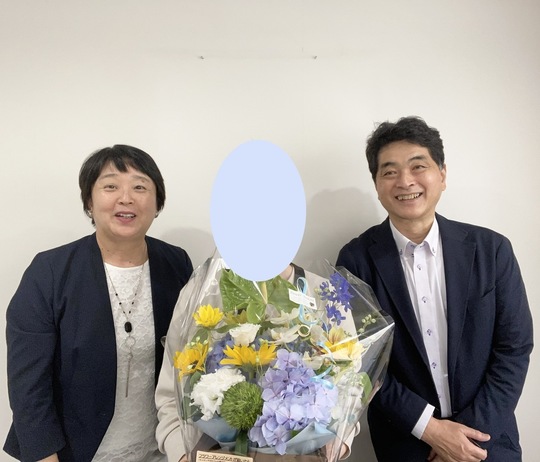 6月24日(土)、30代前半女性の海原 純さん(仮名)が、お相手の2歳年下男性、人見知 誠さん(仮名)と一緒に成婚退会の手続きに来てくださいました。<写真は誠さんが恥ずかしがって写っておりません>